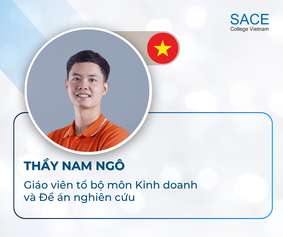 Thầy Nam Ngô (Quốc tịch Việt Nam) là một giáo viên thuộc tổ bộ môn Kinh doanh và Đề án nghiên cứu tại SACE College Vietnam và Hanoi Adelaide School.