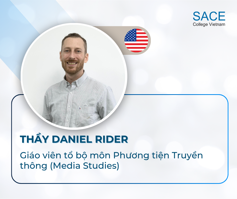 Thầy Daniel Rider (Quốc tịch Hoa Kỳ) là một giáo viên sáng tạo và nhiệt huyết tại SACE College Vietnam và Hanoi Adelaide School.