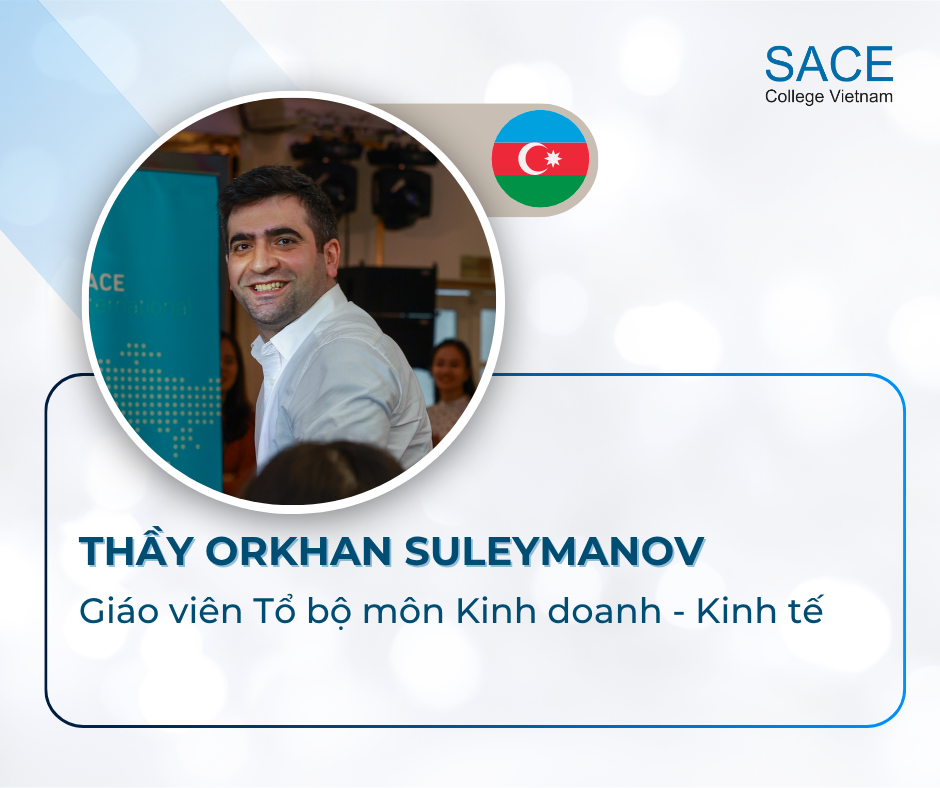 Thầy Orkhan Suleymanov (Quốc tịch Azerbaijan) là một giáo viên có nhiều kinh nghiệm trong lĩnh vực Kinh doanh và Tài chính. Trước khi giảng dạy tại SACE College Vietnam và Hanoi Adelaide School, thầy đã kinh nghiệm giảng dạy môn Kinh tế và Kinh doanh tại Kings Education, trụ sở Seoul, Hàn Quốc.